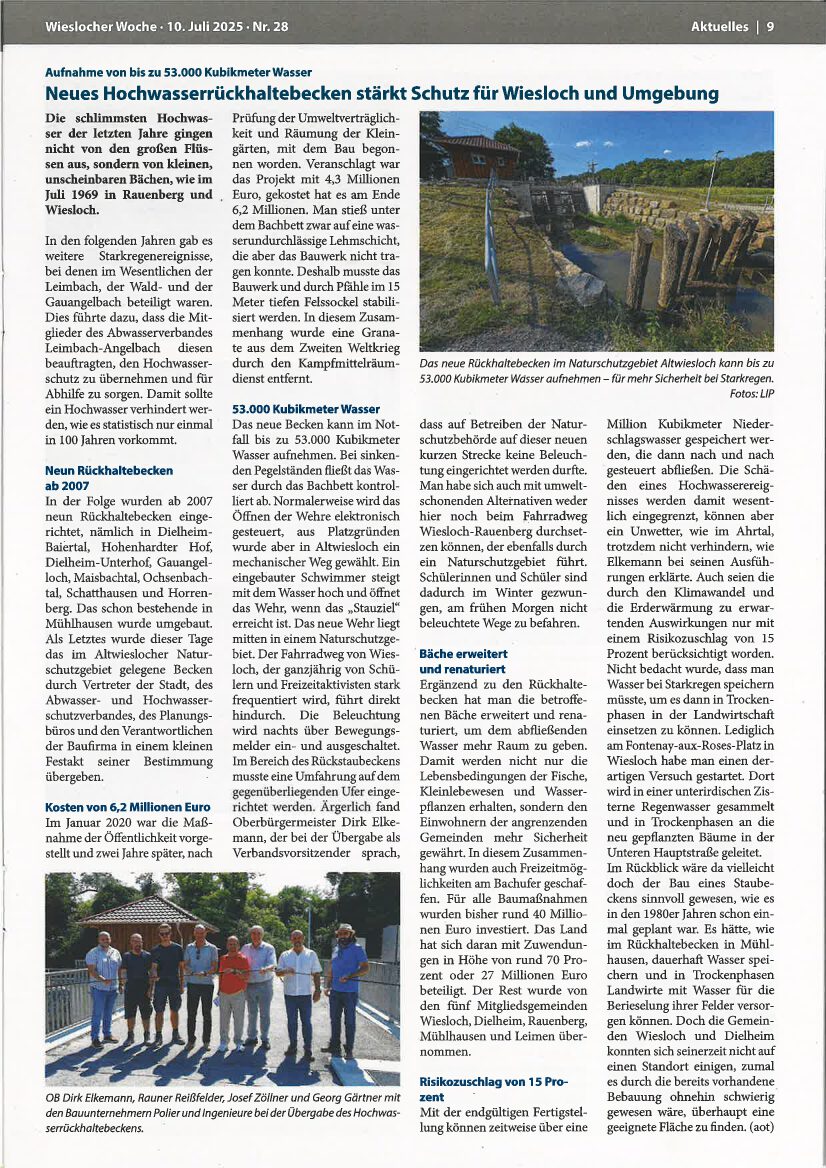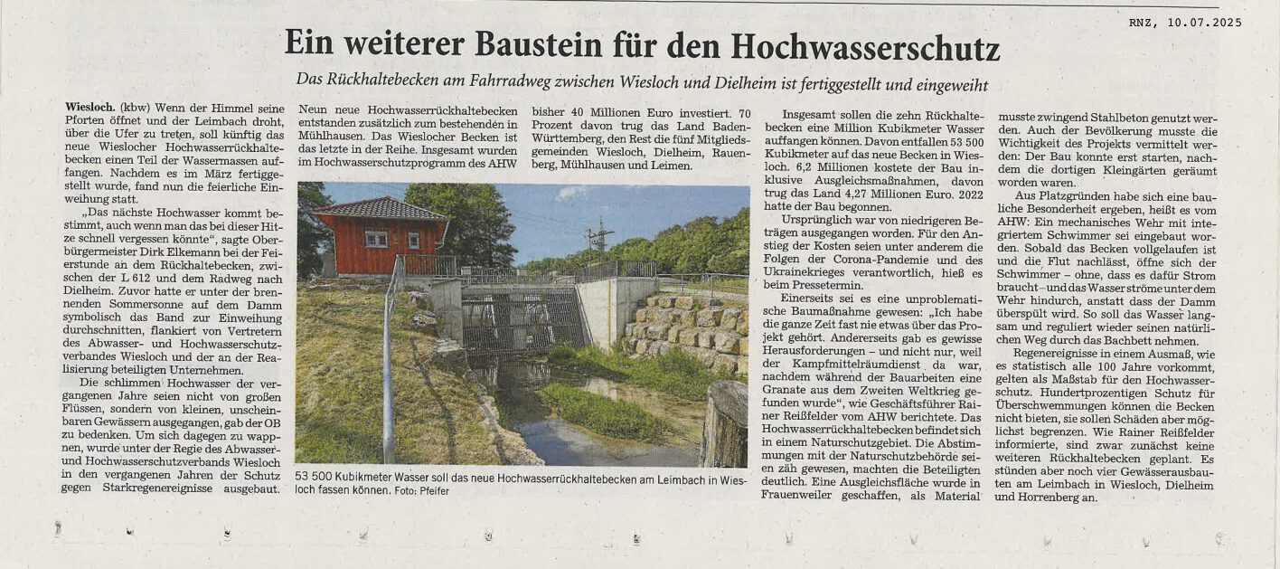 Neues Hochwasserrückhaltebecken stärkt Schutz für Wiesloch und Umgebung.